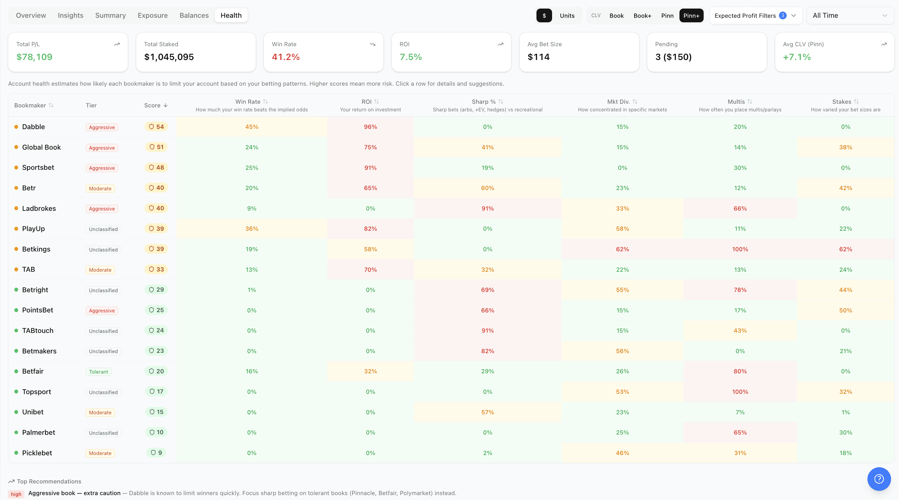 AI-powered risk scoring across every bookmaker account