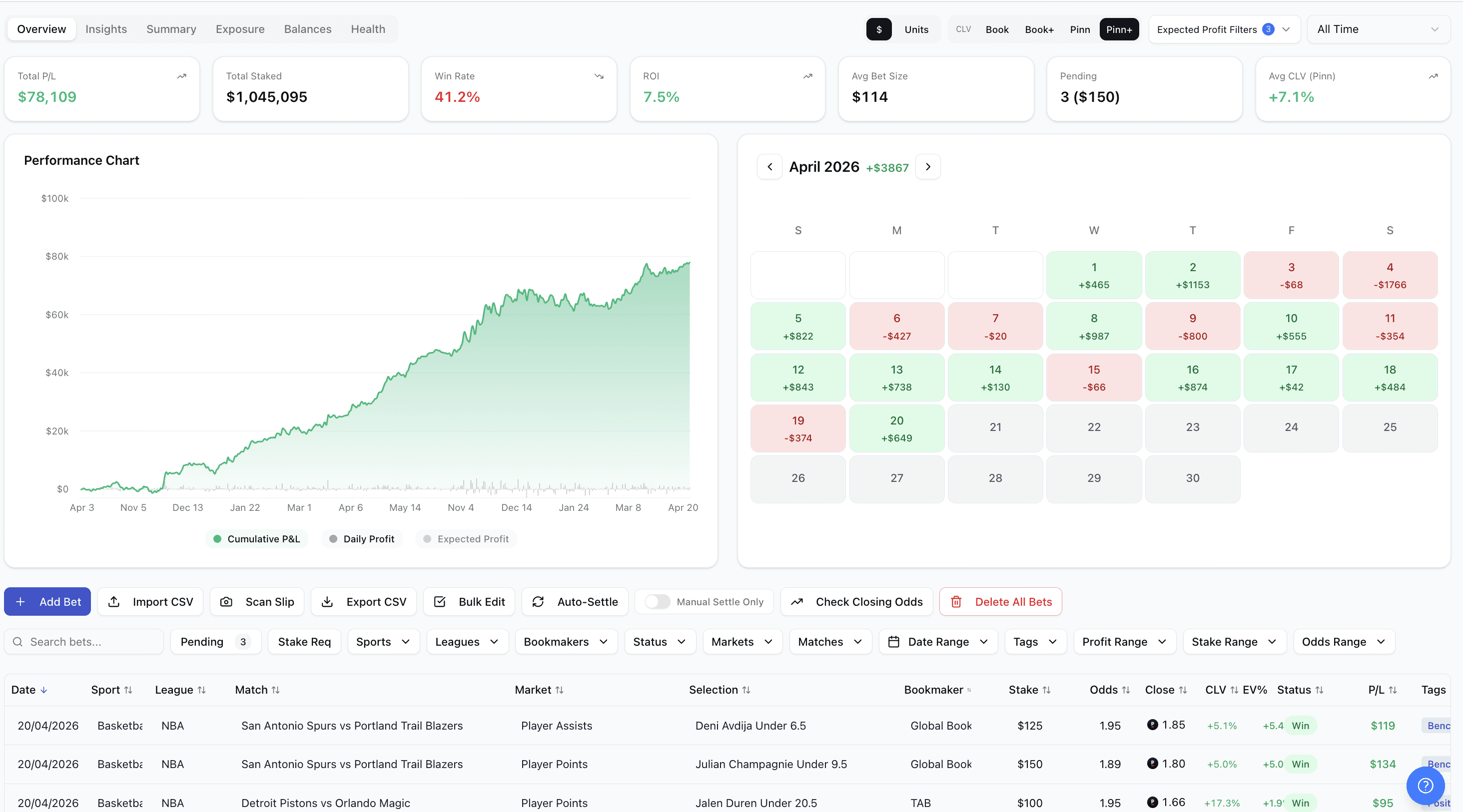 The Serious Punter: You're betting hundreds or thousands a week across multiple bookies. You need real numbers, true P&L, ROI by sport, CLV by market to know where your edge is and where you're leaking money.