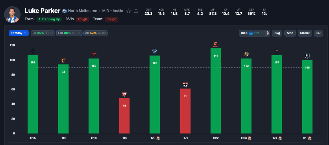 Luke Parker 90+ AFL Fantasy Points — 8/10 L10 @ $1.76 Sportsbet