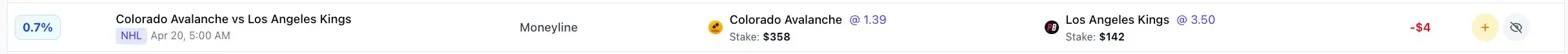 You can bet $358 on Colorado Avalance at Betfair at 1.39 and $142 on Los Angeles Kings at 3.50 and you will only lose $4. These are very retail bets and make your account look like a regular punter.
